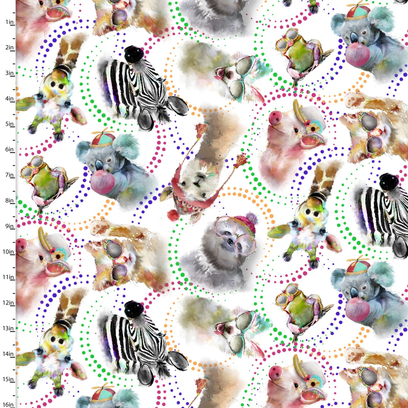 Road Trippin Tossed Animals in White by Connie Haley for 3 Wishes Fabrics 44 inches wide 100% Cotton Quilting Fabric 3W-20888-WHT
