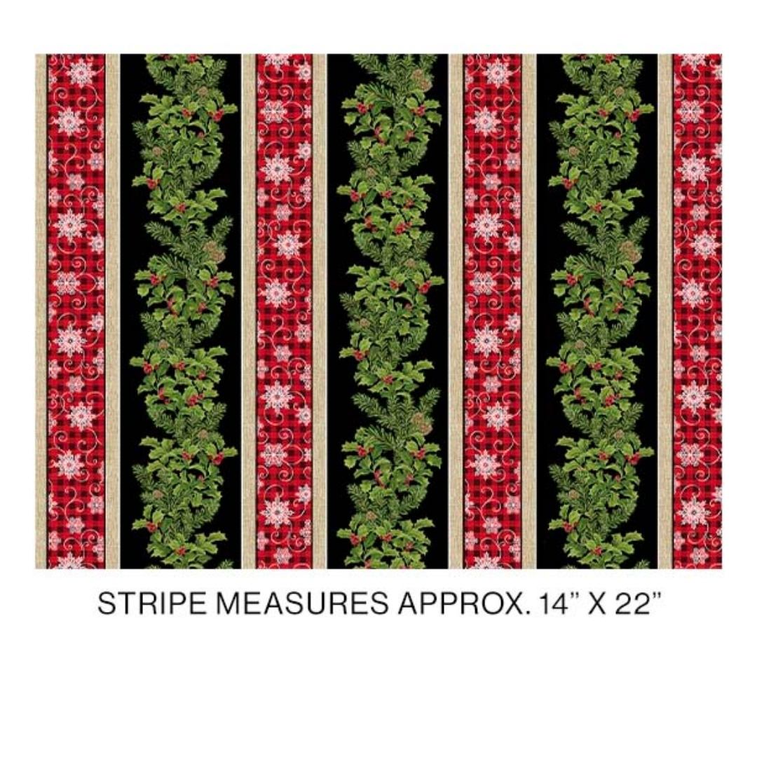 Joy of the Season Stripe Leaves Snowflake Black Multi Red Green Molly B Benartex Cotton Fabric