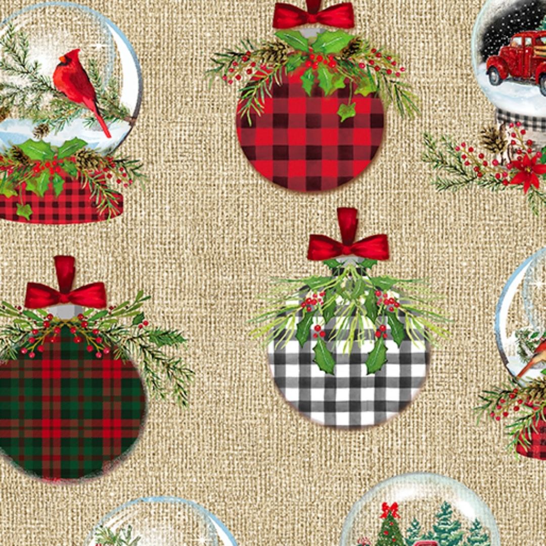 Joy of the Season Ornaments on Natural by Molly B for Benartex 44 inches wide 100% Cotton Quilting Fabric BE-13093-70