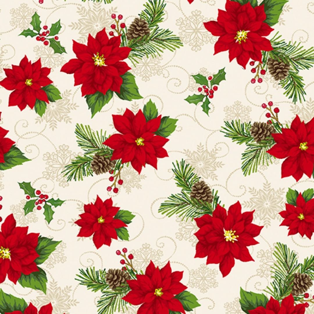 Joy of the Season Joyful Poinsettia Cream Molly B Benartex Cotton Fabric