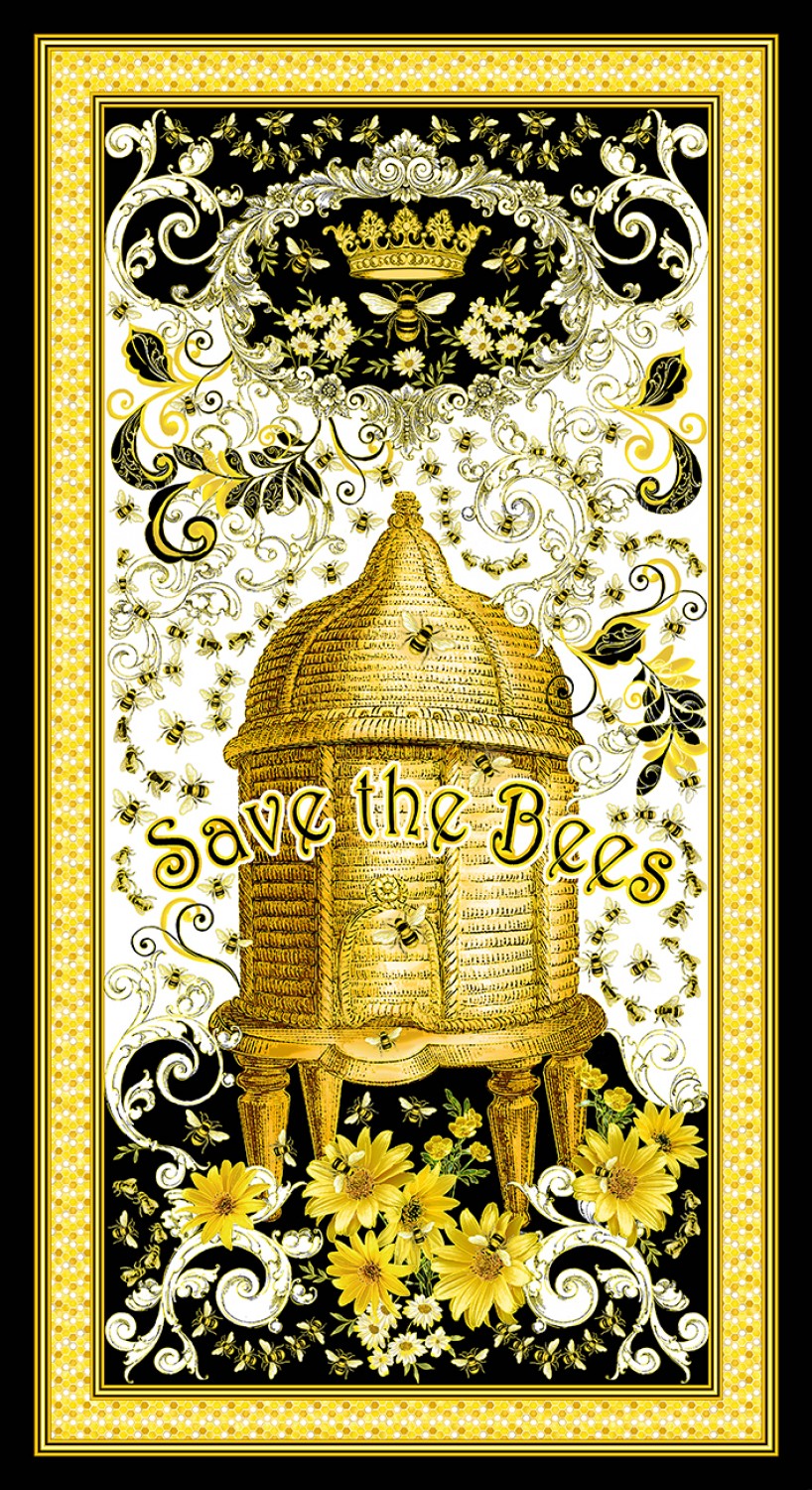 - Tags: 24", 9967MB, 9967MB-12, BE-9967MB-12, bee hive panel, Bees, Benartex, Black, Buzzworthy, Cotton, Crown, Fabric, Floral, Flowers, Gold, Inspirational, Kanvas Studio, Metallics, Panel, Quilting,
