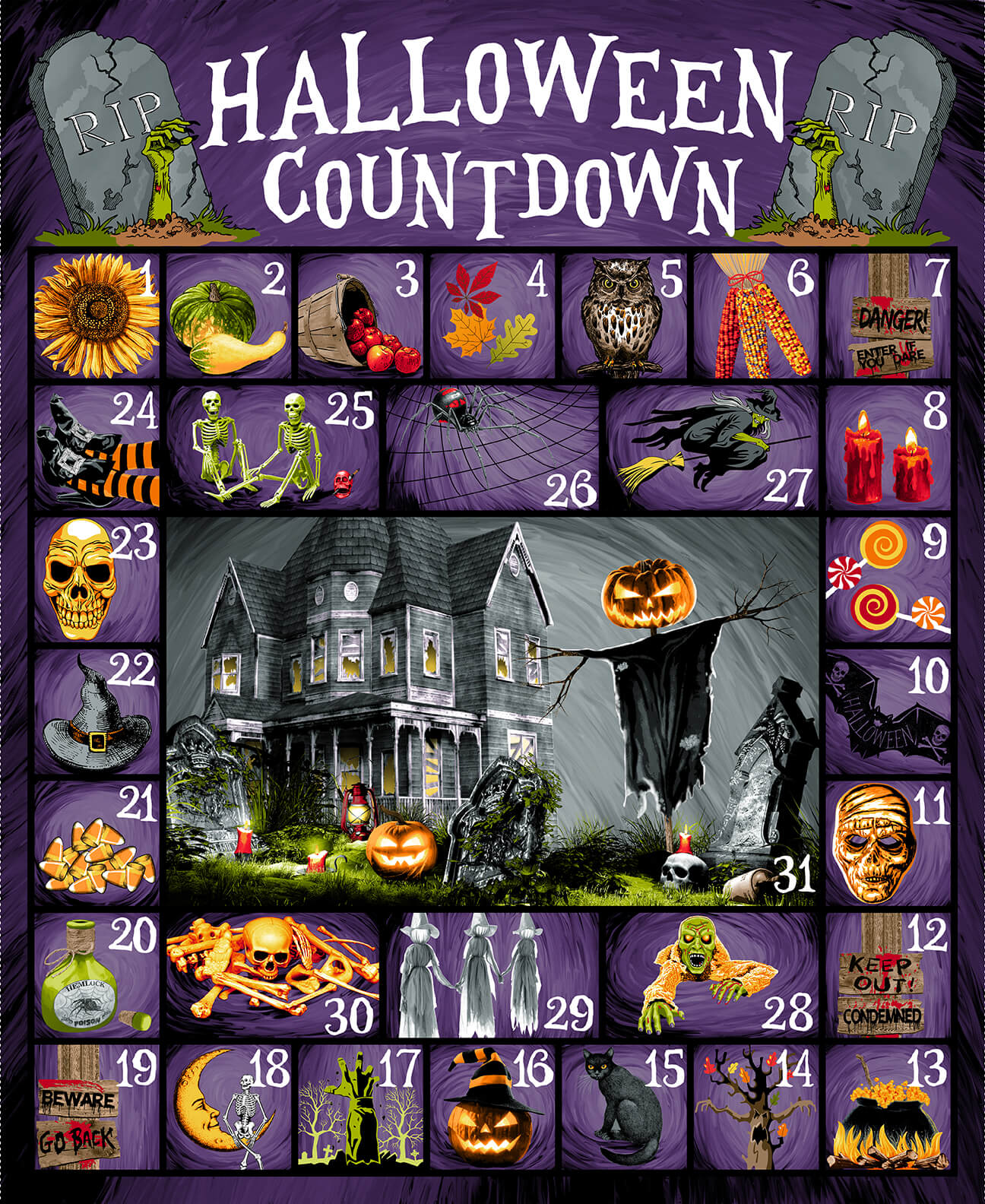 Halloween Countdown Panel Glow 36 x 43 inches by Urban Essence for Blank Quilting BQ-2262PG-55