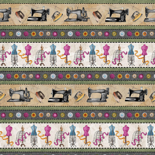 Atelier Stripe Ivory Elizabeth Medley Blank Quilting Fabrics Cotton Fabric