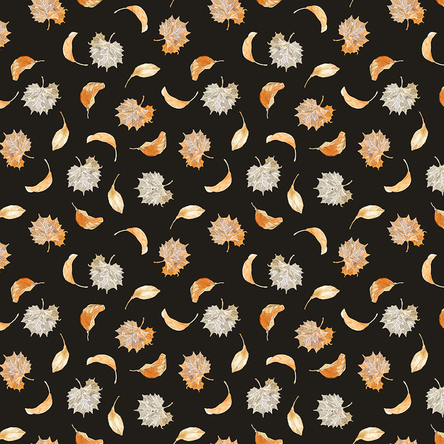Harvest Classics Autumn Leaves Black Anna Bailey Blank Quilting Cotton Fabric