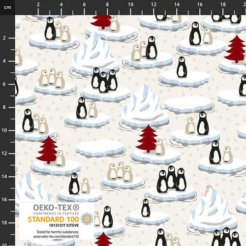 Winter Pingos Snowflakes and Penguins Cream Stof Fabrics Blank Quilting Cotton Fabric