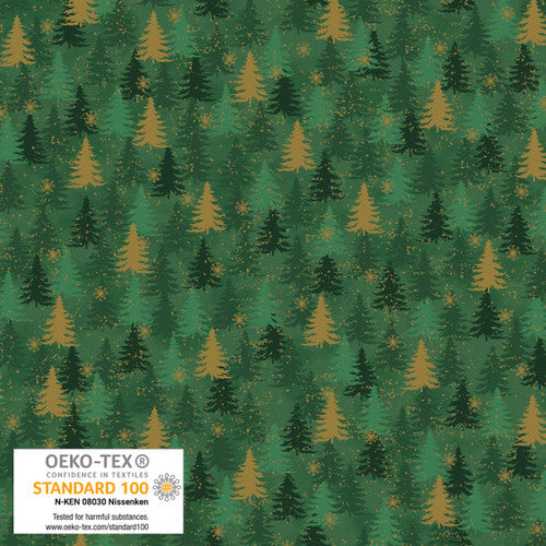 We love Christmas Trees w/ Metallic Green Gold STOF Blank Quilting Cotton Fabric BQ-4592M-802