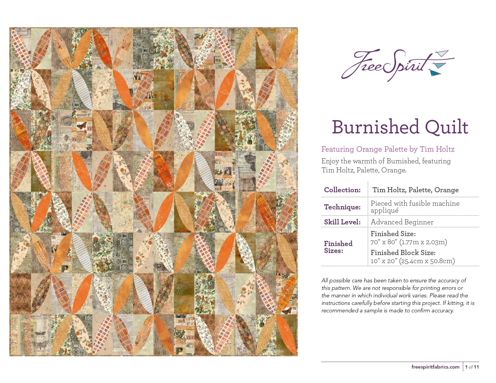 Burnished Quilt Eclectic Elements Orange Palette Tim Holtz Free Spirit-FREE PATTERN