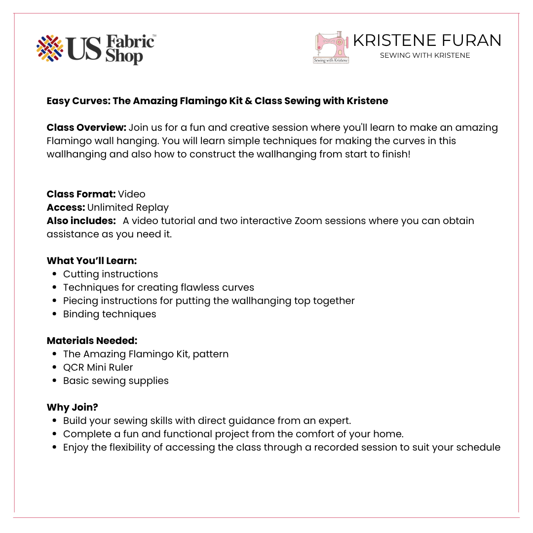 Easy Curves Amazing Flamingo Wall Hanging Kit & Class Sewing with Kristene