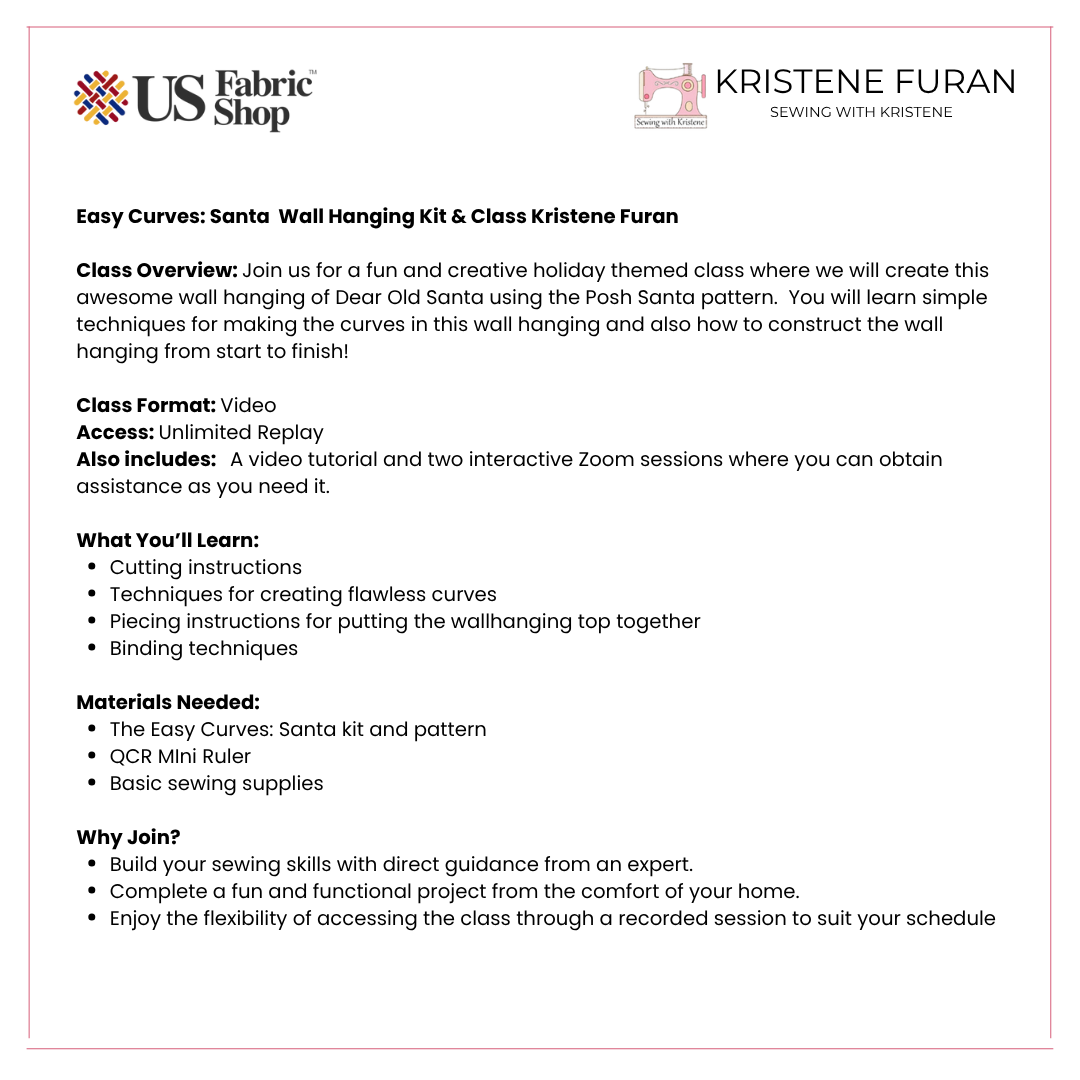 Easy Curves: Santa Wall Hanging Kit & Class Kristene Furan
