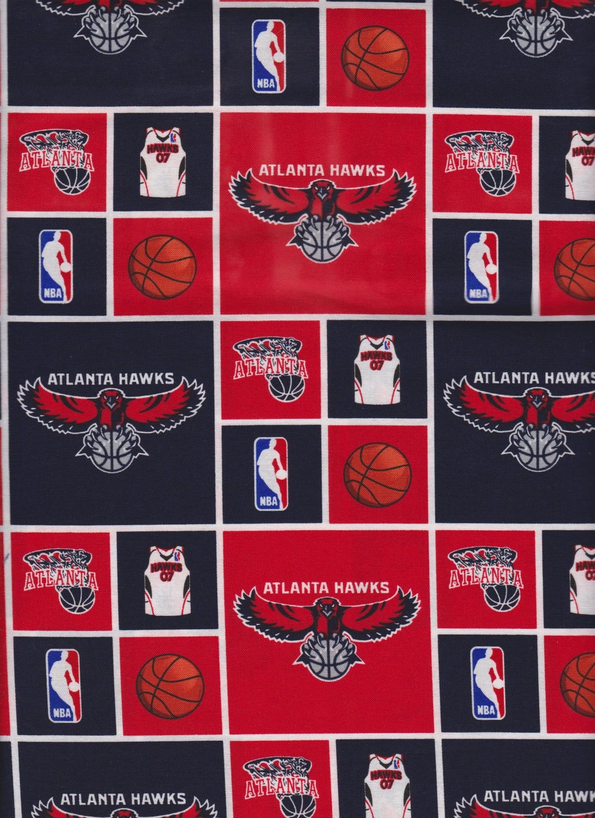 Atlanta Hawks NBA 45 inches wide 100% Cotton Fabric. Cheer on the Atlanta Hawks, your favorite NBA team, with this NBA-licensed cotton broadcloth fabric. Perfect for use in quilting projects, craft projects and even apparel. Colors include red and blue. Die-hard fans can show team spirit and love of the game by creating any kind of apparel or accessory. Make some cozy items with this NBA college fabric!