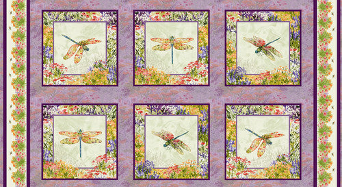Dragonfly Dance 6 Blocks Panel 24" Multi Grace Violet Designs Henry Glass Cotton Fabric HG-1736-53