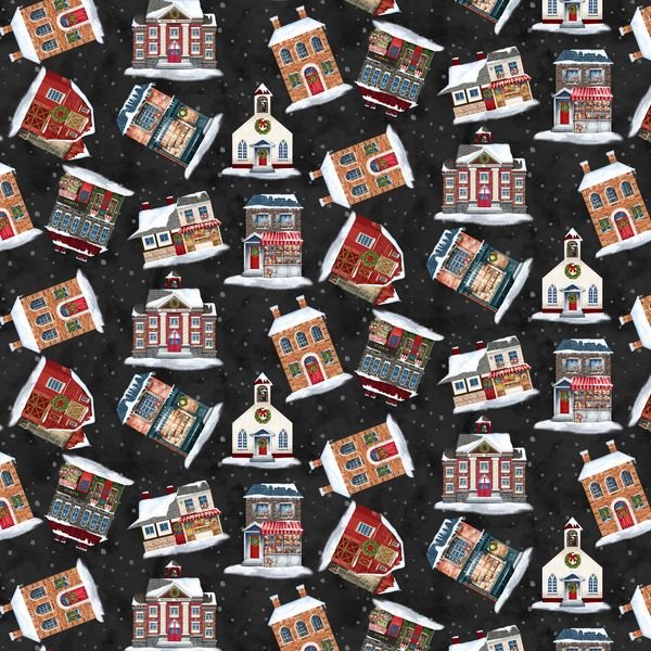 Hollyville Manor Village Toss in Black designed by Jan Mott for Henry Glass 44 inches 100% Cotton Quilting Fabric HG-3520-99