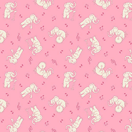Nana Mae VI Musical Elephants in Pink by Henry Glass Fabrics HG-364-22