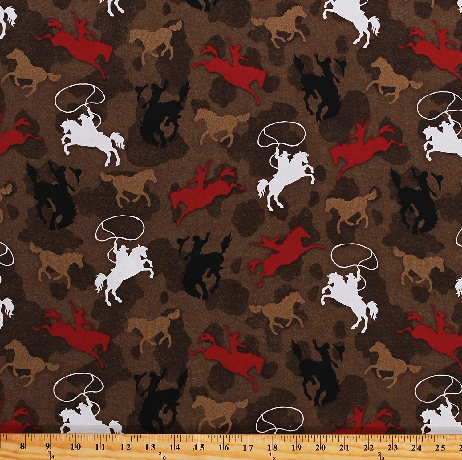 Sunset Rodeo Bucking Broncos Tossed Brown Henry Glass Cotton Fabric