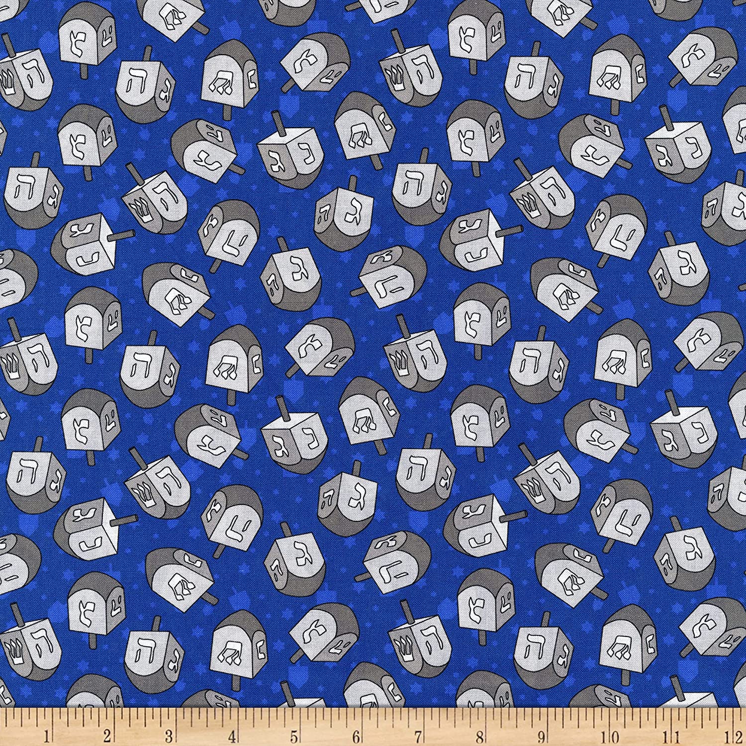 Festival of Lights Tossed Dreidels Royal Blue Athena Art Studios Henry Glass Cotton Fabric
