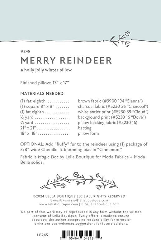 - Tags: 17"x17", 245, Christmas, Christmas Sewing, Festive, Festive Quilt Pattern, Holiday, Holiday Pillow, Home Decor Pattern, Home Décor, LB-245, Lella Boutique, Merry Reindeer, Merry Reindeer Pillow, New Arrivals, Pattern, Pillow, Pillow Pattern, Reindeer, Sewing Pattern, Vanessa Goertzen,