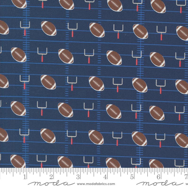 Play Ball Gridiron Football Goal Post Field in Navy Dark Blue designed by Moda 44 inches wide 100% Cotton Quilting Fabric MD-33812-17