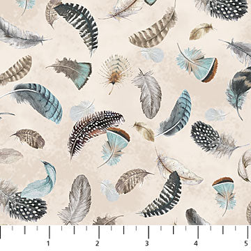 Feathered Nest Tossed Feathers in Beige designed by Northcott Fabrics 44 inches wide 100% Cotton Quilting Fabric NC-24397-12