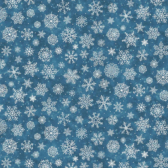 Silent Night Snowflakes in Dark Blue by Abraham Hunter for Northcott Fabrics 44 inches wide 100% Cotton Quilting Fabric NC-25390-46