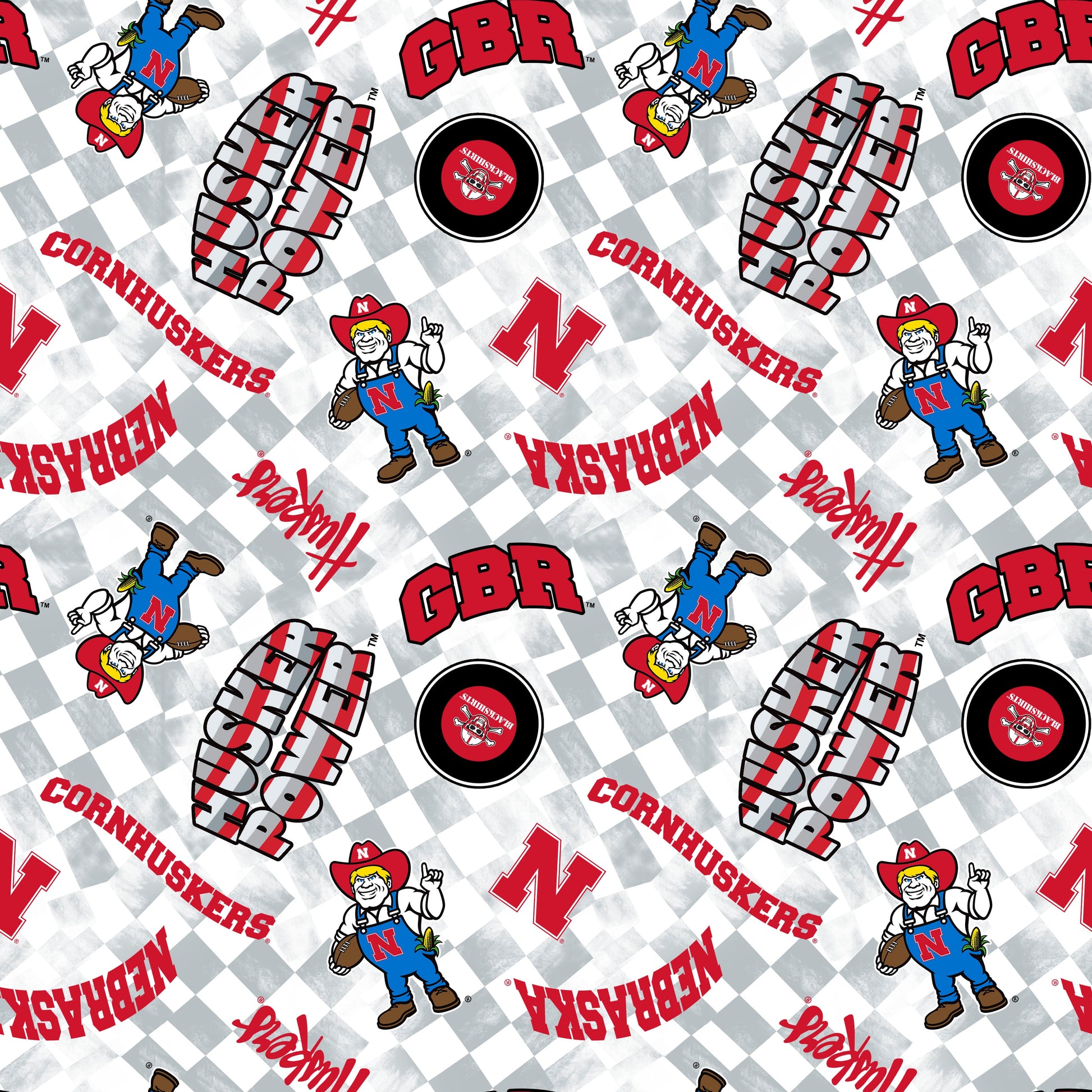 Nebraska Cornhuskers NCAA College Checks White designed by Sykel Enterprises 43 inches wide 100% Canvas Duck Cloth Cotton Fabric NE-1380-WHITE