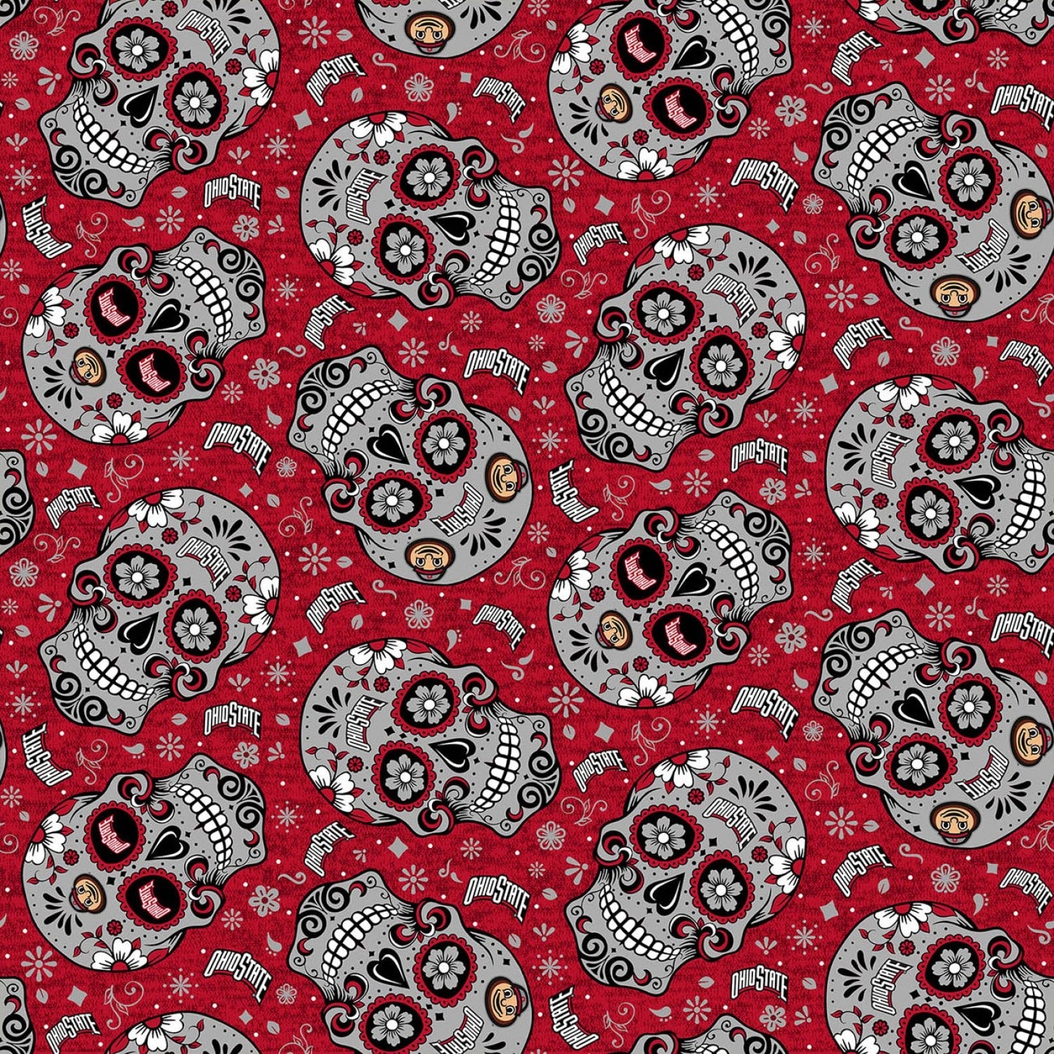 Ohio State Buckeyes NCAA College Sugar Skulls Sykel Cotton Fabric OHS-1193