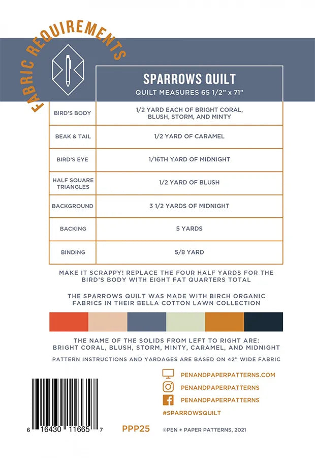 - Tags: 25, Animals Pattern, Bird Pattern, Geometric Pattern, Home Decor Sewing Patterns, Lindsey Neil, Modern Quilt Pattern, New Arrivals, Notions, Pattern, Pen & Paper Patterns, PPP25, Project Pattern, Quilt Pattern, Quilting Pattern, Sparrows,