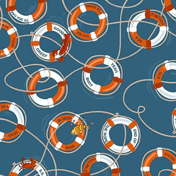- Tags: Blue, fabric, Home Decor, In Deep Ship, Life Preservers, Nautical, QT-1649-26456-W, Quilting Treasures, Ship in a bottle,
