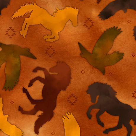 Spirits of the Wind Animal Silhouettes Orange Carol Cavalaris Quilting Treasures Cotton Fabric
