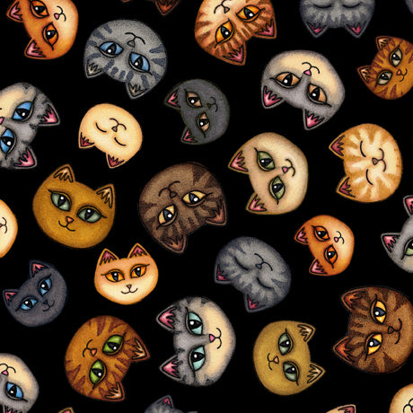 Meow Cat Head Toss in Black by Dan Morris for Quilting Treasures Fabrics 44 inches wide 100% Cotton Quilting Fabric QT-29184-J