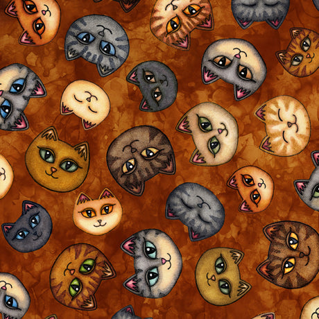 Meow Cat Head Toss in Orange by Dan Morris for Quilting Treasures Fabrics 44 inches wide 100% Cotton Quilting Fabric QT-29184-T