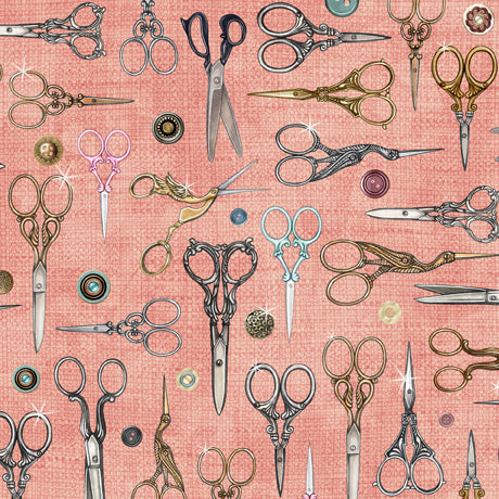 Just Sew Scissors in Pink by Dan Morris for Quilting Treasures Fabrics 44 inches wide 100% Cotton Quilting Fabric QT-29229-C