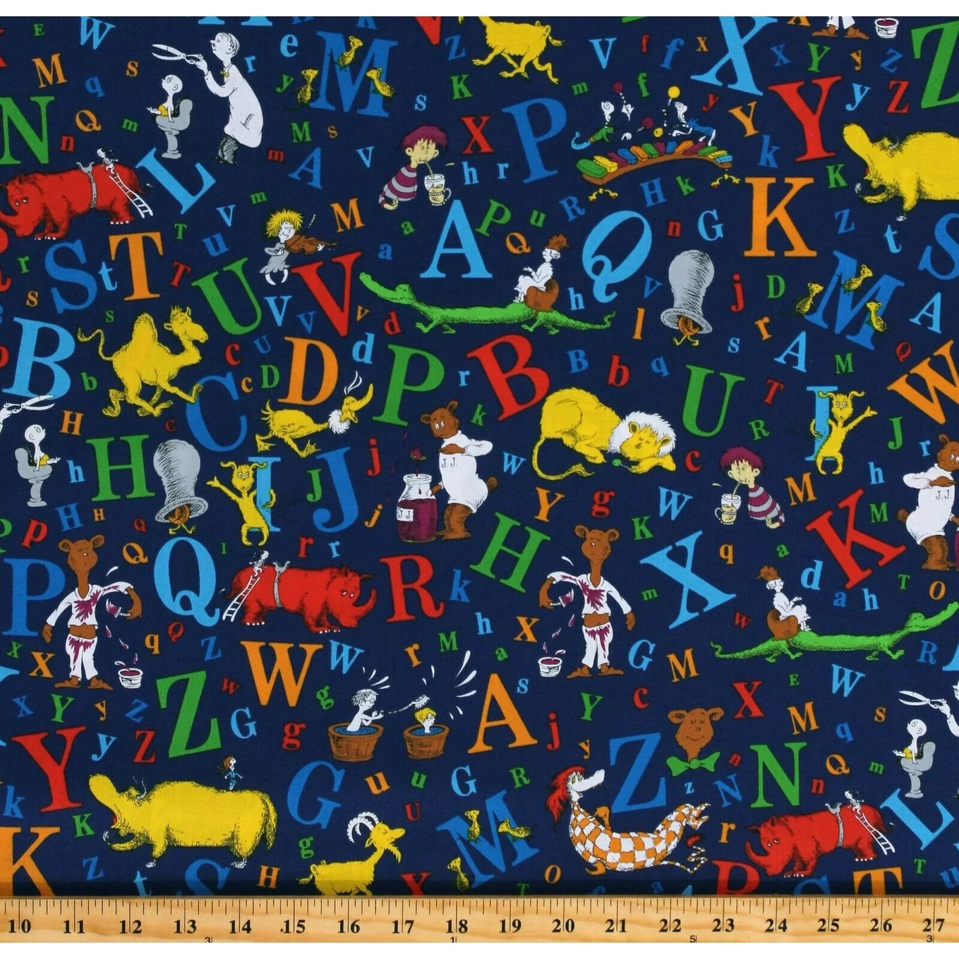 - Tags: 74350-9, ABC, ADE-74350-9, Alphabet, Animals, Blue, Books, Characters, Cotton, Dr. Seuss, Dr. Seuss ABC, Education, Fabric, Kids, Letters, Licensed, Navy Blue, Quilting, RK-ADE-74350-9, Robert Kaufman, Whimsical,