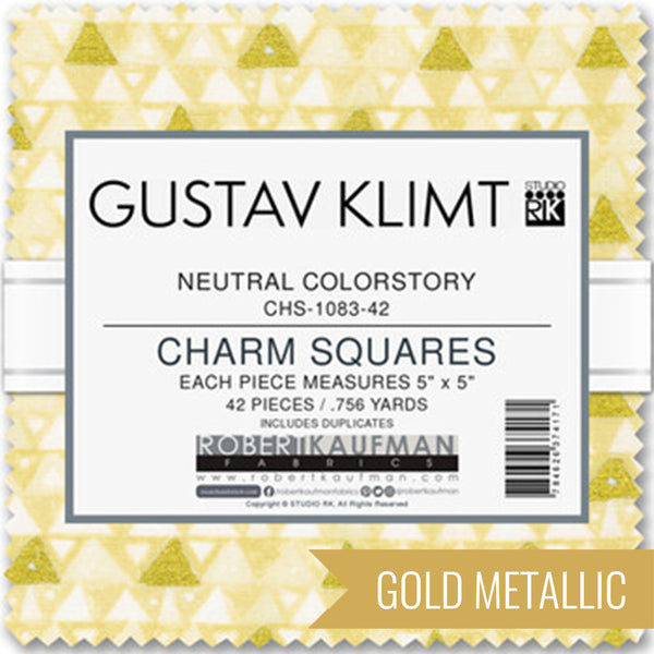 - Tags: 1083-42, 5", Charm Pack, Cotton, Fabric, Gold Metallic, Gold Metallic Fabric, Gustav Klimt, Gustav Klimt Neutral charm pack, Gustav Klimt Neutral gold precut, Metallic, Modern, Neutral Colorstory, RK-CHS-1083-42, Robert Kaufman, Shimmer, Squares,