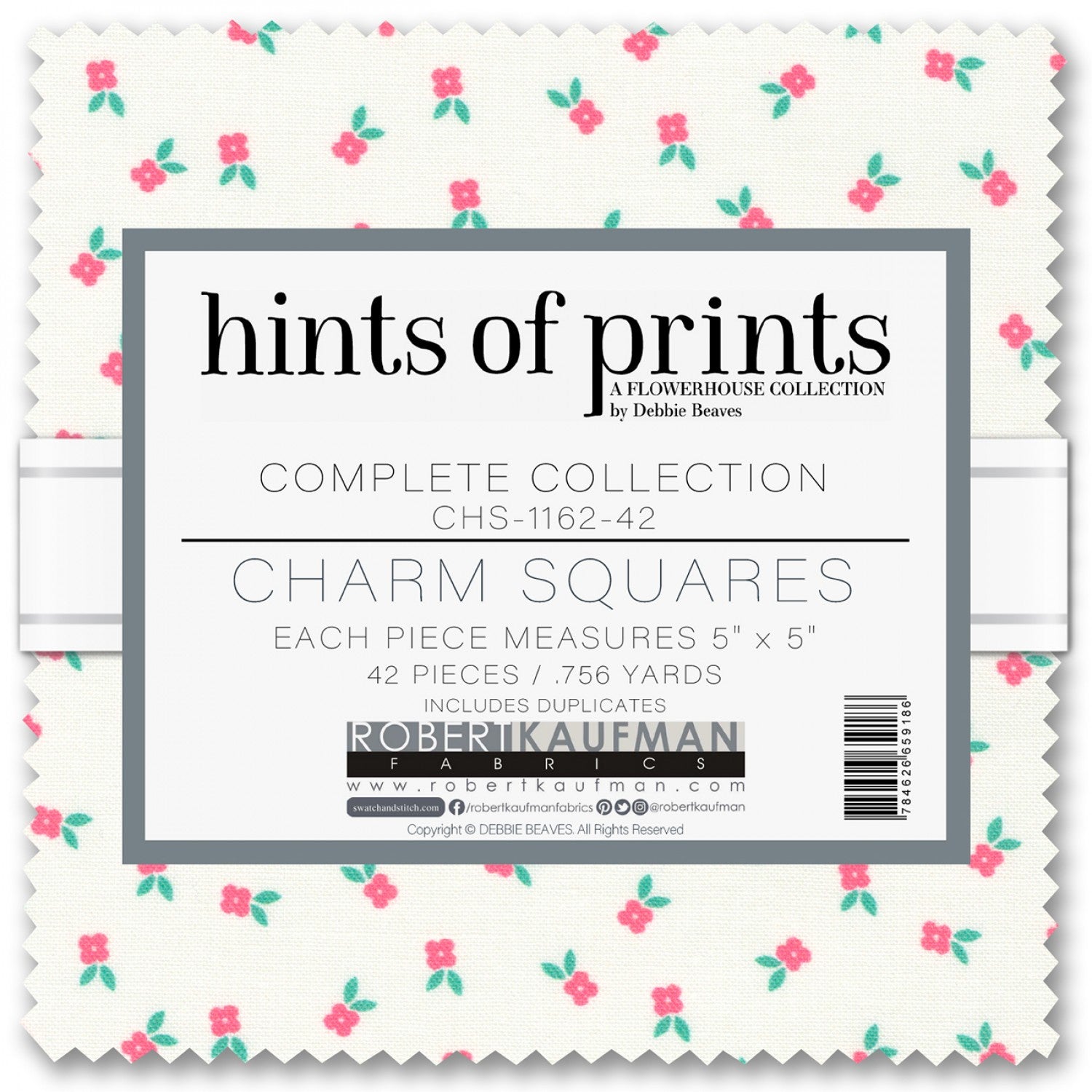 Flowerhouse Hints of Prints Charm Pack 5" Squares 42pcs by Debbie Beaves for Robert Kaufman 100% Cotton Quilting Fabric RK-CHS-1162-42