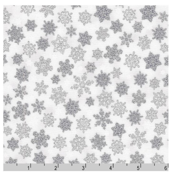 Holiday Charms Silver Metallic Snowflakes White Robert Kaufman Cotton Fabric RK-SRKM-19951-186