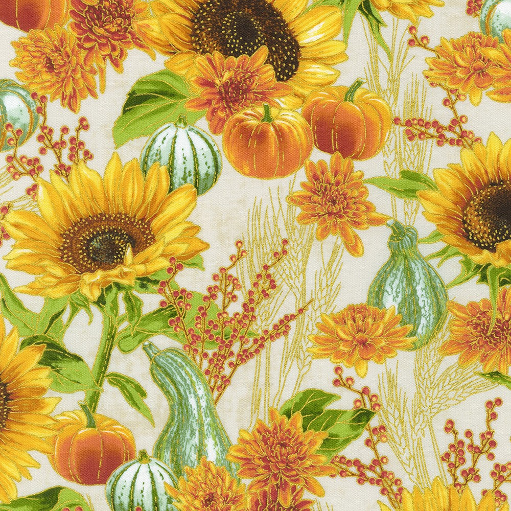 Autumn Fields Autumnal Garden in Natural by Robert Kaufman 44 inches wide 100% Cotton Quilting Fabric RK-SRKM-21572-14