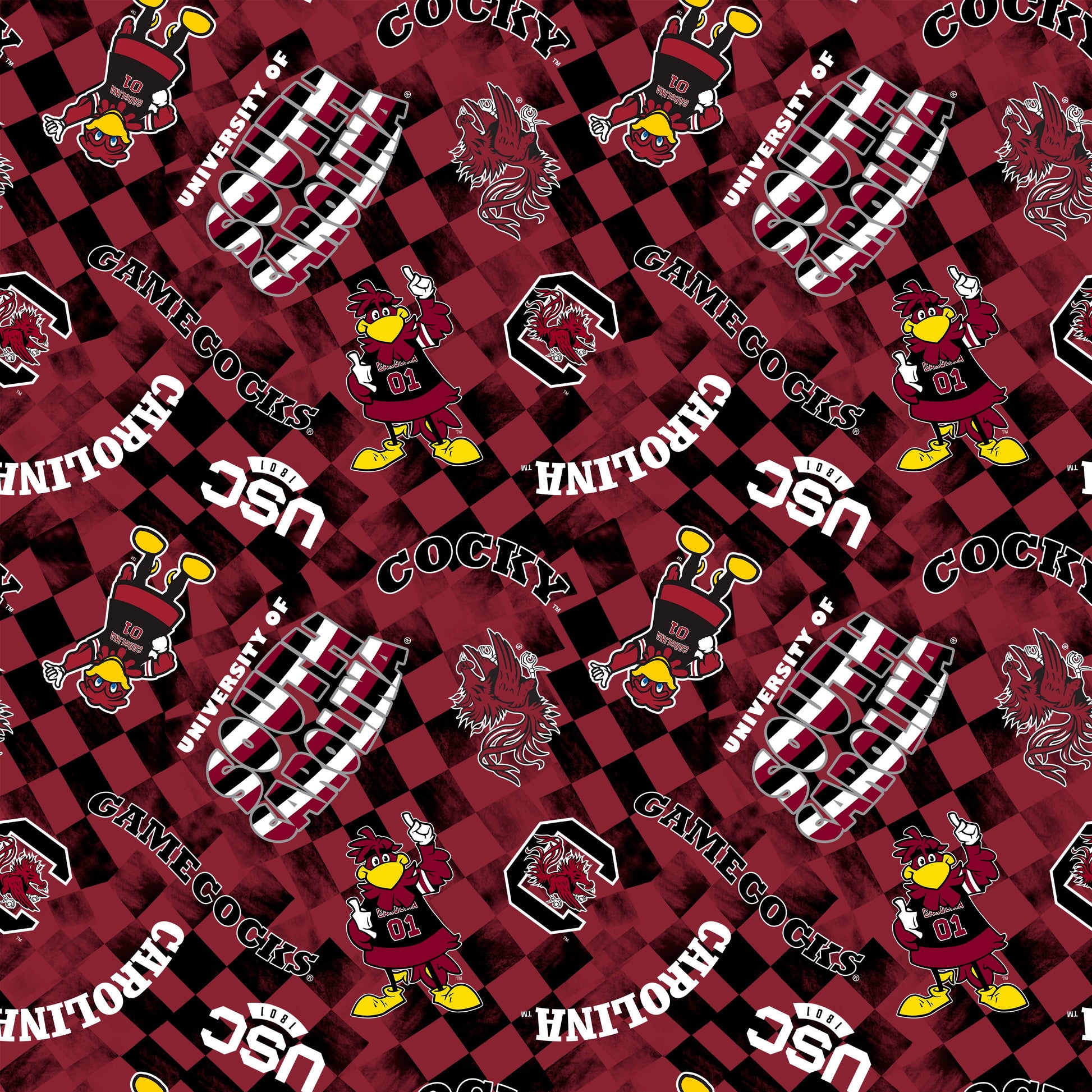 South Carolina Gamecocks NCAA College Checks Dk Red designed by Sykel Enterprises 43 inches wide 100% Canvas Duck Cloth Cotton Fabric SC-1380-DKRED