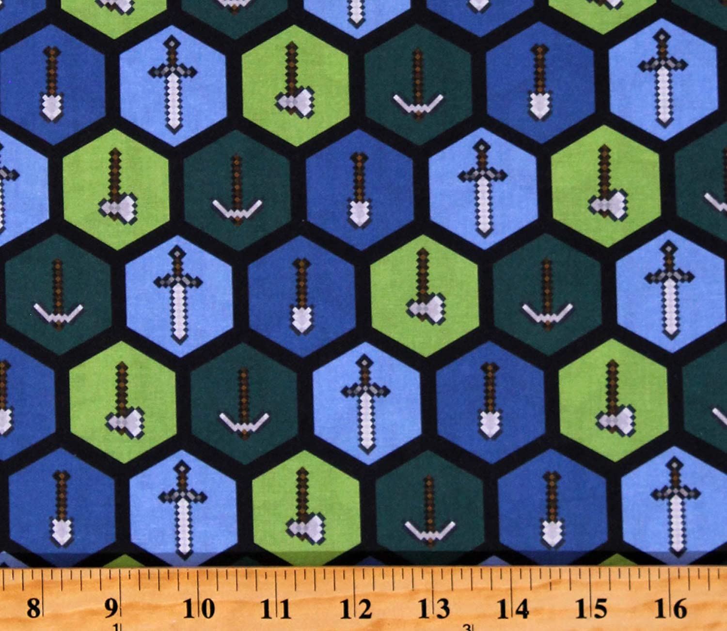 Minecraft Tools Pickaxes Axes Shovels Swords Hexagons Pattern Video Games Springs Creative Cotton Fabric