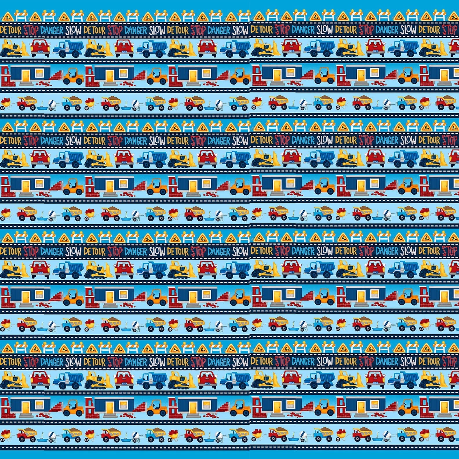 Under Construction Border Stripe in Cyan Blue designed by Dana Saulnier for Studio E 44 inches wide 100% Cotton Quilting Fabric SE-6065-17