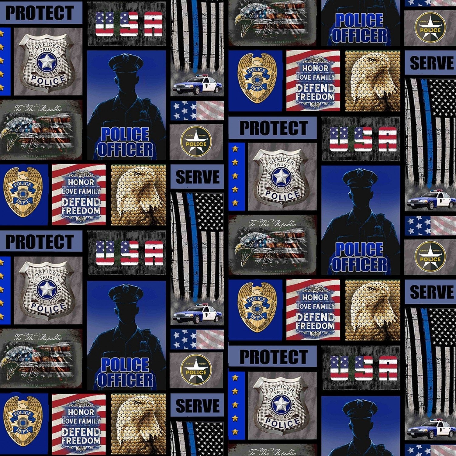 Police New Block US Flag Badge Officer Eagle by Sykel Enterprises 44 inches wide 100% Cotton Quilting Fabric SYK-1339PD