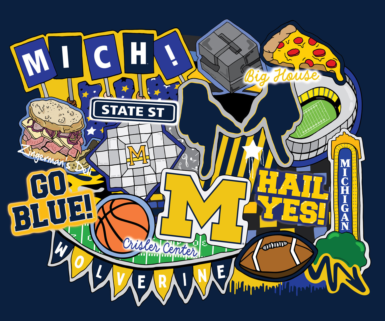Michigan Wolverine NCAA College Doodle Panel 36"x43" designed by Sammy for Sykel Enterprises 100% Cotton Quilting Fabric SYK-MCHG-2000
