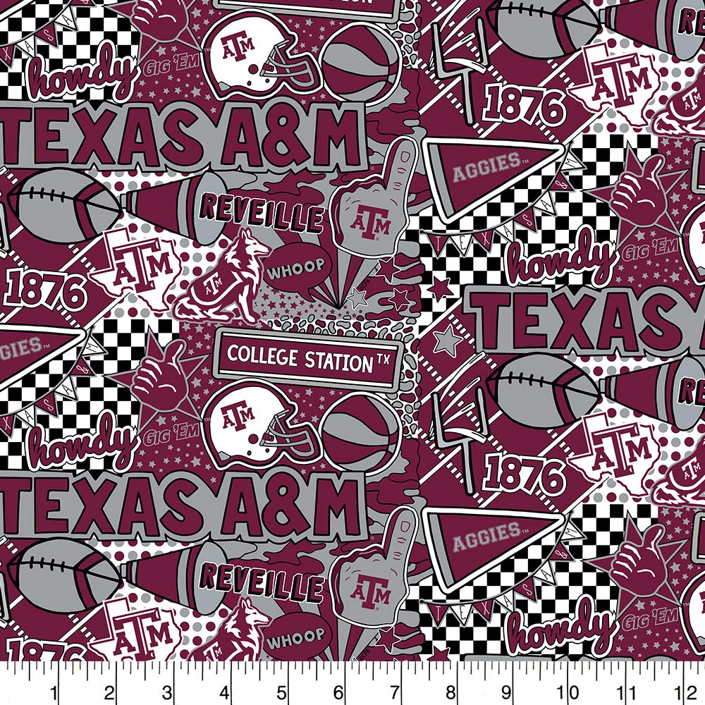 Texas A&M Aggies NCAA College Pop Art Graffiti Sykel Cotton Fabric TAM-1165