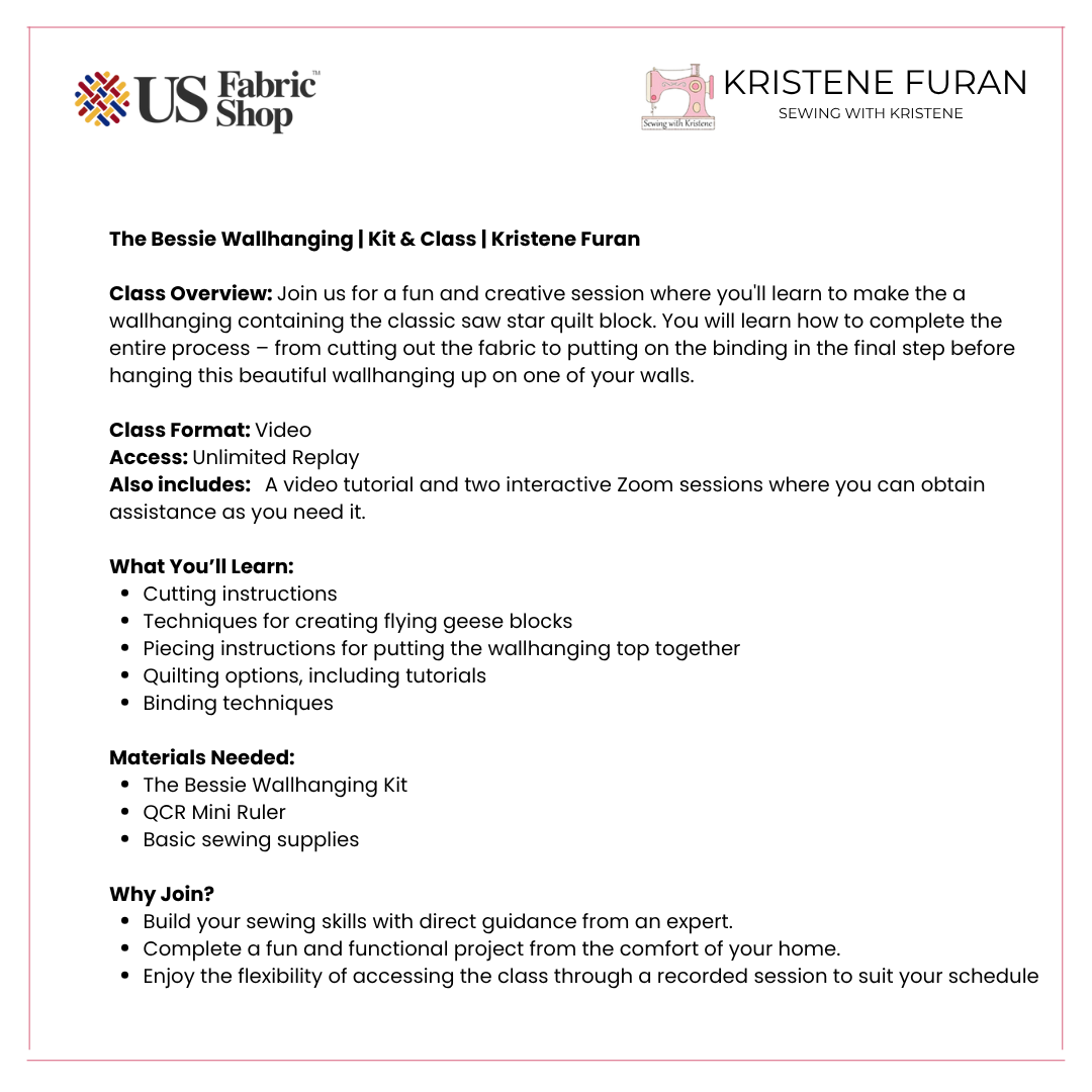 The Bessie Wall Hanging Class & Kit Sewing with Kristene