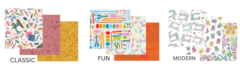 For this Class & Kit, you will have the option to select MODERN, CLASSIC, or FUN fabrics for your kit.