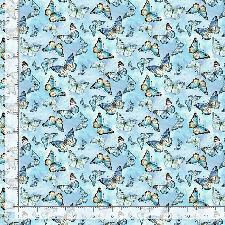Forest Whisper Flying Butterflies in Sky designed by Timeless Treasures 44 inches wide 100% Cotton Quilting Fabric TT-BUG-CD3690-SKY