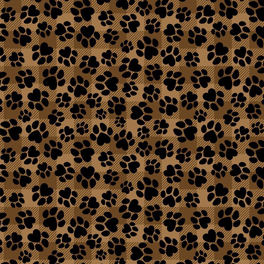 Happiness Has Paws Dog Paws on Plaid Brown Timeless Treasures Cotton Fabric TT-DOG-CD3319-BROWN