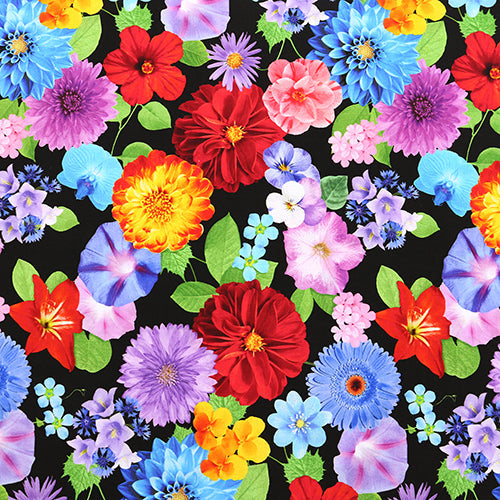 Variety of Vibrant Florals in Black designed by Chong-A-Hwang for Timeless Treasures 44 inches wide 100% Cotton Quilting Fabric TT-FLORA-CD1189-BLACK
