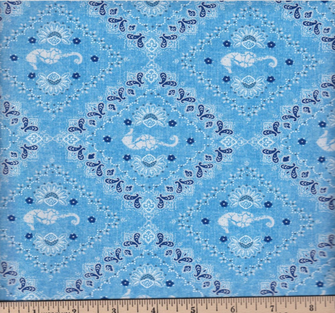 Light Blue Bandana Shoreline design by Windham Fabrics 44 inches wide 100% Cotton Fabric 50111-3