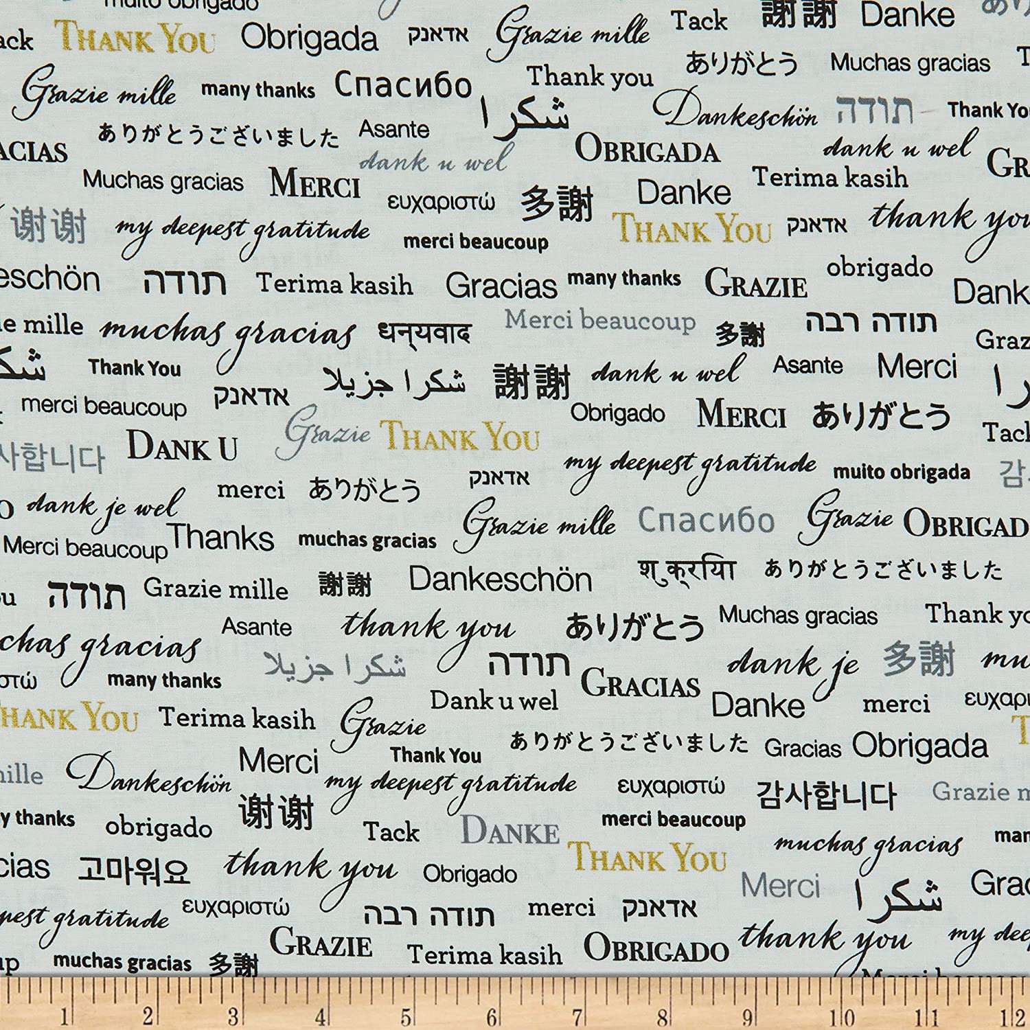 Appreciation Thank You Metallic Words Multi Language White Whistler Studios Windham Cotton Fabric WF-52497M-2
