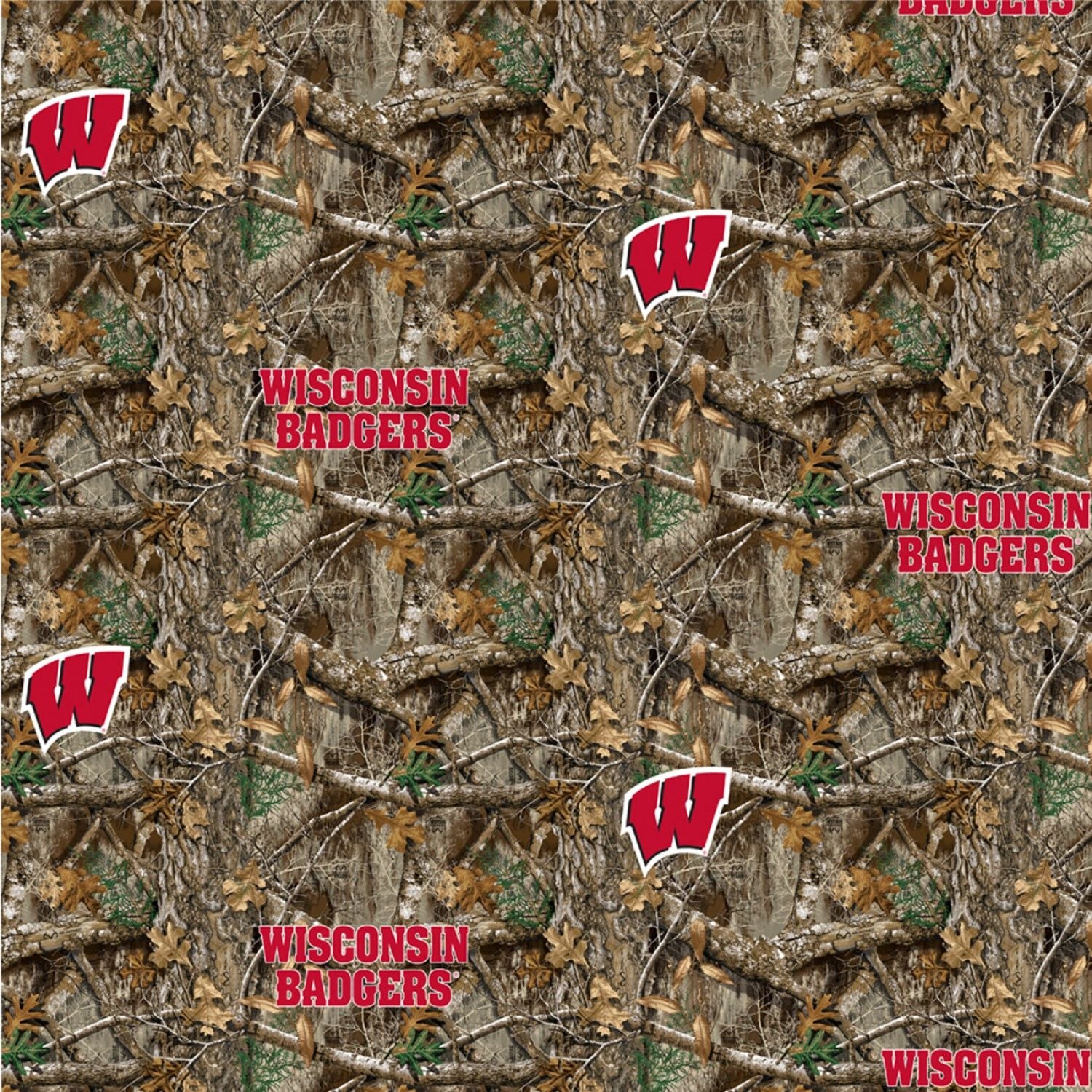 Wisconsin Badgers NCAA College Realtree Design 43 inches wide 100% Cotton fabric. Cheer on the Badgers!